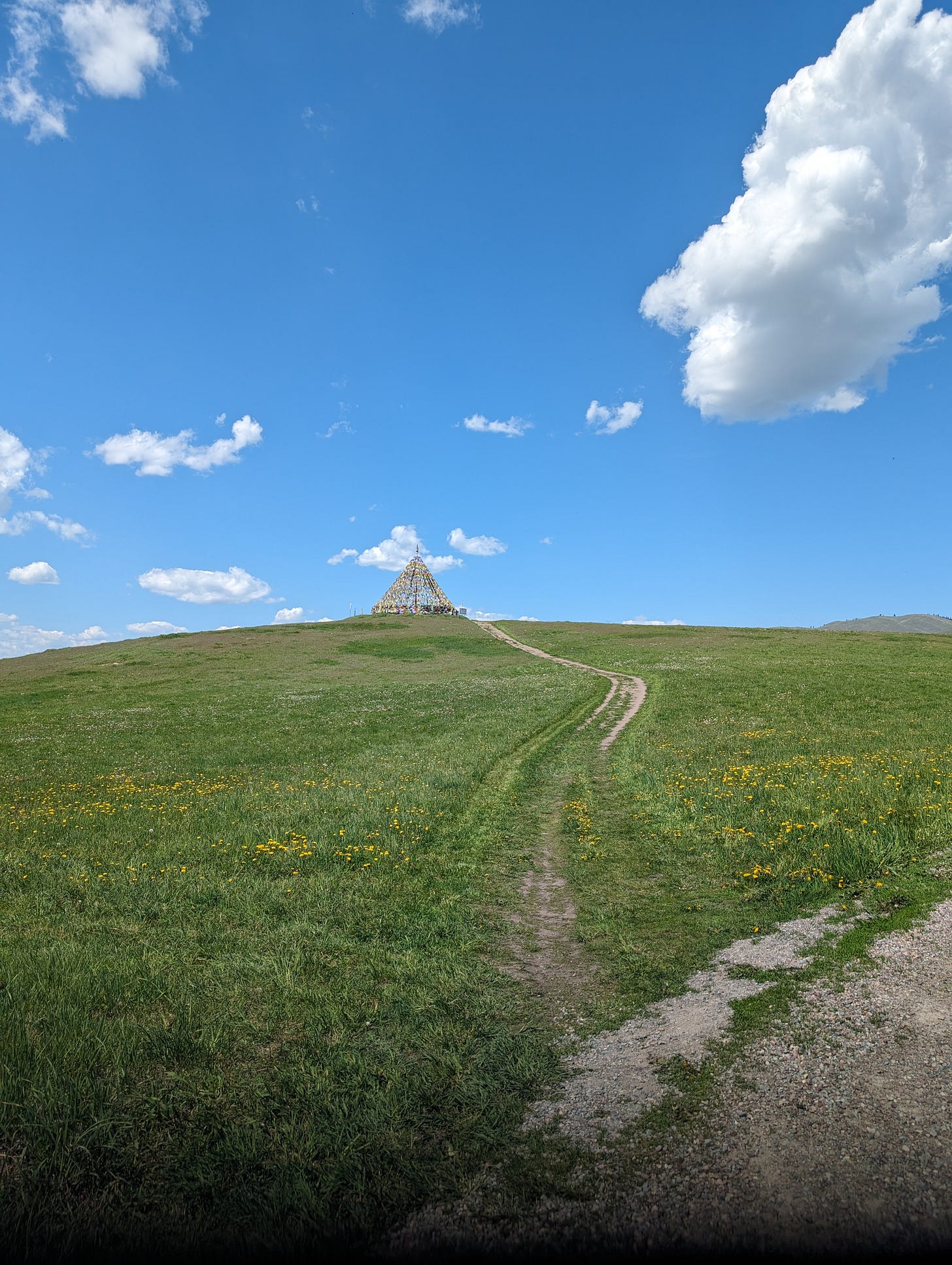 Image description: A photo of the highest point in The Garden of One Thousand Buddhas outside of Arlee, Montana…my partner and I visited this sacred place on our way to Glacier National Park in May of 2024, right after I finished my MFA in Missoula.